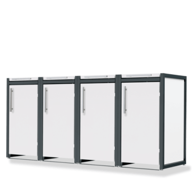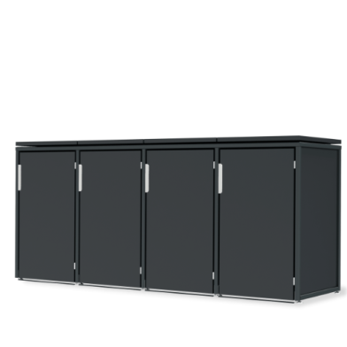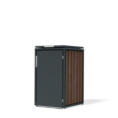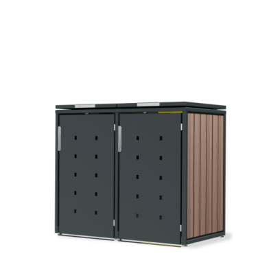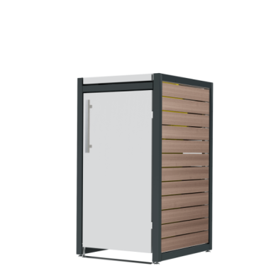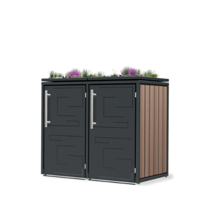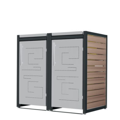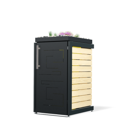 Ein Beispiel für die Auswahl einer Box für Mülltonnen ist unser Modell Max. Sie haben hier ein individuell minimalistisches Design und können anhand des Online-Konfigurators individuell die Farbe, das Material, die Griffe, die Dachvarianten und die Verkleidung auswählen. Wählen Sie für diese Box für Mülltonnen beispielsweise die Mülltonnenverkleidung in Edelstahl V2A mit satinierter Oberfläche. Oder entscheiden Sie sich für eine pulverbeschichtete Lackierung auf KTL beschichtetem Stahlblech mit Thermowood Holz-Seitenverkleidungen. Sie können diese Box in 120 oder 240 Liter auswählen.
