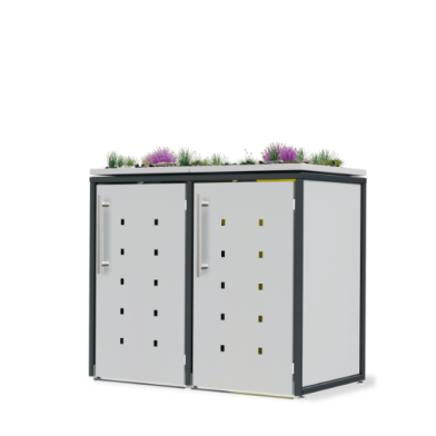 Eine Mülltonnenbox, die Sie bei uns bestellen, wird immer fertig montiert geliefert. Sie ist also für Sie sofort einsatzbereit. Außerdem erfolgt die Lieferung der Box für Mülltonnen kostenlos per Spedition und wird bis zur Bordsteinkante geliefert. Ein weiterer Vorteil ist, dass Sie die hässlichen Tonnen, die Papiertonne, die Biotonne, die Restmülltonne oder auch die Plastikmülltonne, künftig optisch schön versteckt haben. Somit werten Sie Ihre Außenanlagen mit unserer Box für Mülltonnen auf. Die individuelle Gestaltung ist ein Vorzug, den viele Kunden bei uns schätzen. Sie wählen innerhalb des Volumens, der Entität, der Dachlösung, der Verkleidung, der Griffe, der Türöffnung und dem Türschloss aus. Wählen Sie ein Pflanzdach, ein Flachdach oder ein Klappdach bei der Box für Mülltonnen. Beim Türdesign können sie gelocht oder Standard oder ein anderes Design wählen. Unsere RAL-Farben werden Sie in der Auswahlmöglichkeit ebenfalls überzeugen.