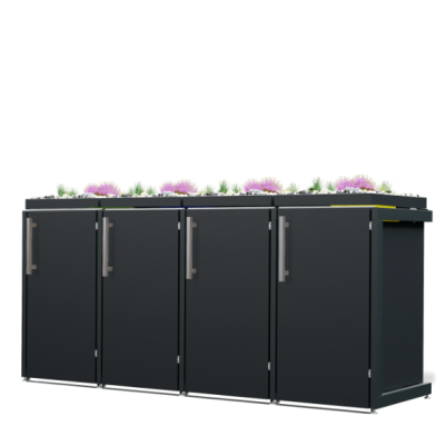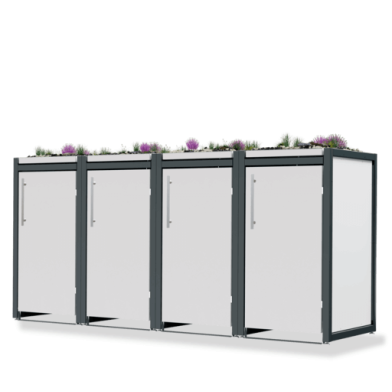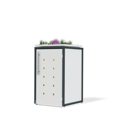 Sie können im Konfigurator beispielsweise auch auswählen, die die Türen ausgestattet sind. Wünschen Sie einen Gasdruckdämpfer bei Ihrer Mülltonnenbox mit Pflanzdach? Das ermöglicht Ihnen immer ein sanftes Öffnen, das leise vonstattengeht. Auch beim Schließen haben Sie mit dem Gasdruckdämpfer sicheren Halt. Sie können auch die Türöffnung auswählen. Standardmäßig ist sie DIN-Links. Dann sind die Scharniere links. Doch auch die Ausführung DIN-Rechts ist bei uns möglich. Kontaktieren Sie unseren Support bei diesen Wünschen. Ein nachträglicher Umbau hier ist nicht möglich. Aber auch das Volumen (120 oder 240 Liter beispielsweise), die Entität, und die Farbe können Sie selbst bestimmen. Wählen Sie beispielsweise die Mülltonnenbox 1er mit Pflanzdach oder entscheiden Sie sich für eine Mülltonnenbox 2er, Mülltonnenbox 3er oder Mülltonnenbox 4er. Bei den Farben stehen Ihnen diverse RAL-Farben zur Auswahl bei der Mülltonnenbox mit Pflanzdach.