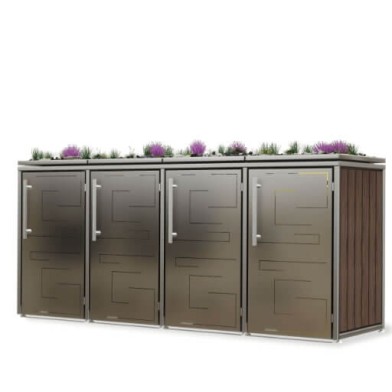Innerhalb von Deutschland wird die Mülltonnenbox Edelstahl komplett montiert frei Bordsteinkante für Sie vom Team von Masterbox24 angeliefert. Alles erfolgt verschraubt auf einer Einwegpalette. Selbstverständlich können Sie beispielsweise auch die Mülltonnenbox Edelstahl mit den Lärchepfosten auswählen. Ein abschließbarer Knebelgriff, eine Kippvorrichtung, ein Klappdach mit dem Gasdruckdämpfer oder ein Pflanzdach sind weitere Optionen.
