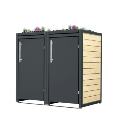 Sie haben einen gemütlichen Stil, lieben natürliche Materialien und wünschen sich auch für die Verkleidung der Mülltonnen einen entsprechenden Look? Dann sind unsere Mülltonnenverkleidungen aus Holz sicherlich das richtige für Sie. Dabei achten wir auf lang haltbare und gut verarbeitete Hölzer, die jedes noch so regnerische und eiskalte Wetter gut überstehen können. Boxen aus Holz spenden dabei eine besonders warme und urige Atmosphäre, die sich gut in viele Exterieurs einfügen lässt. Übrigens: mit der Bepflanzung mit Rankpflanzen erreichen Sie eine noch stärkere Integration in die Umgebung und schaffen einen natürlichen Übergang zwischen Natur und Mülltonnenverkleidung. Angst vor dem schnellen Ergrauen Ihrer Boxen müssen Sie nicht haben. Das Holz kann gut gepflegt und auf Wunsch auch gestrichen werden.