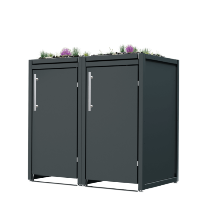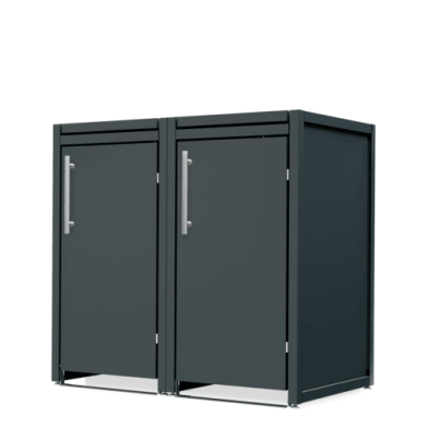 Es sieht unschön aus, die blaue und schwarze Tonne einfach so vor Ihre Haustüre stehen zu haben. Wir von Masterbox24 bieten Ihnen schöne Müllbonnenboxen in verschiedenen Größen und Materialien an. Kaufen Sie beispielsweise für Ihre Papier- oder Restmülltonne die Mülltonnenbox 2er 240 l.